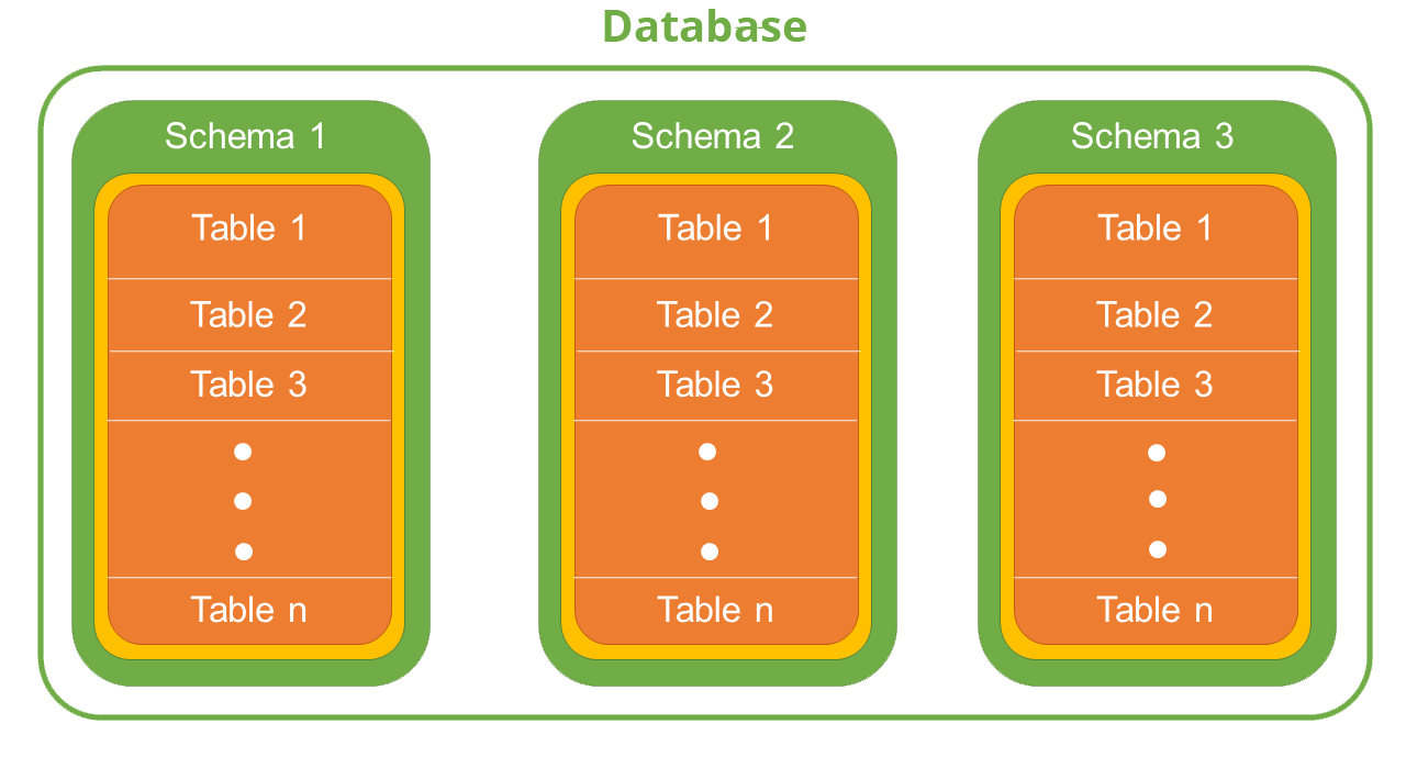 在数据库中,无法创建具有相同名称的多个数据库对象。 为此,架构(schema)提供了一个组环境。