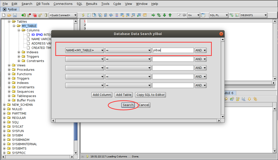 这里以搜索 my_table 表中的name列的值为h3为例,如下所示: