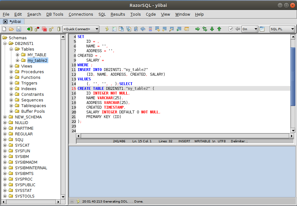 您的位置:database > DB2 专题 > DB2 RazorSQL生成DDL