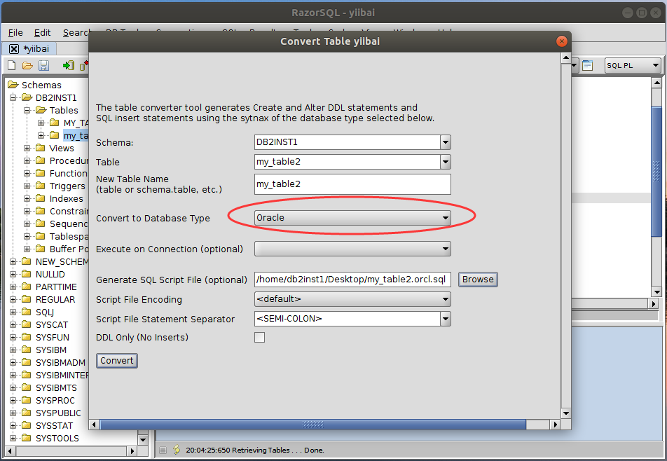 例如:在h2,ms access,mysql,oracle,postgresql等中更改成为db2数据库表。可以更改单个表以及多个表。