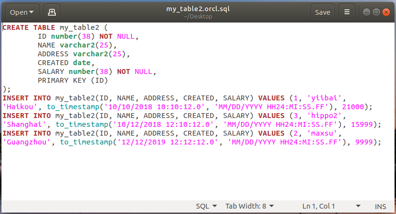 假设更改db2表my_table2成为oracle表,那么参考以下操作: