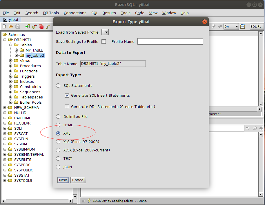 db2使用razorsql导出数据,假设要将数据表的数据导出存为xml格式,可以参考以下步骤: