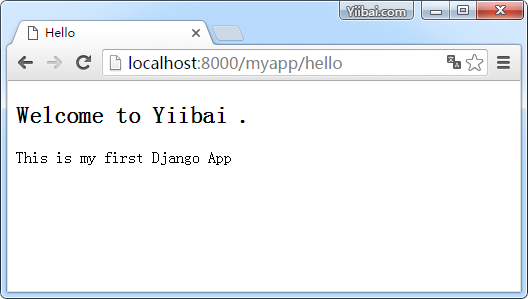 名称−为了执行url反转,需要使用url模式的命名来执行上面示例。这样做以后,启动服务器,通过以下url访问您的视图:http://127.0.0.1/hello