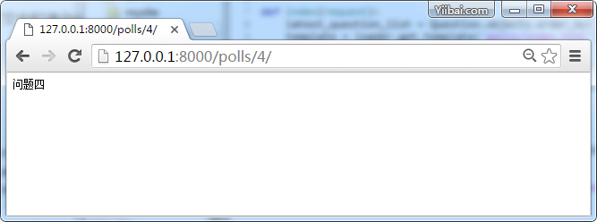 您可以在浏览器打开“/polls/34/”。它会运行detail()方法,并显示任何提供的url内容。 再次尝试访问 “/polls/34/results/” and “/polls/34/vote/” – 这将显示占位符结果和投票页面。
