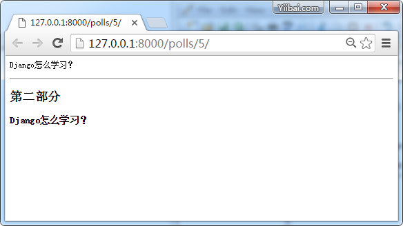 现在测试我们上面编写的代码,在浏览器中打开:http://127.0.0.1:8000/polls/5/ 得到结果如下:
