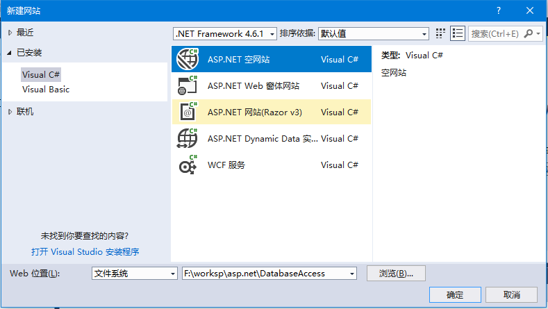 第1步: 创建一个网站项目:databaseaccess,参考下图 -