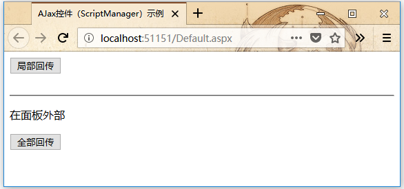 例如,如果按钮控件位于更新面板内部并且被点击,则只有更新面板中的控件将受到影响,页面其他部分的控件将不受影响。这被称为部分回传或异步回传。