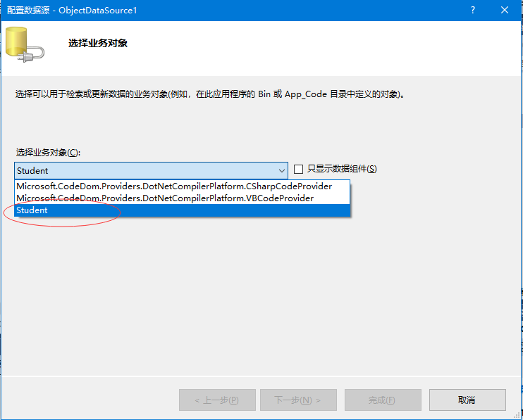 <asp:objectdatasource id="objectdatasource1" runat="server" selectmethod="getstudents" typename="student"></asp:objectdatasource>