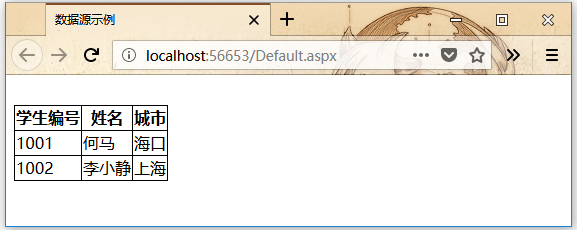 dt.rows.add(new object[] { 1001, "何马", "海口" });