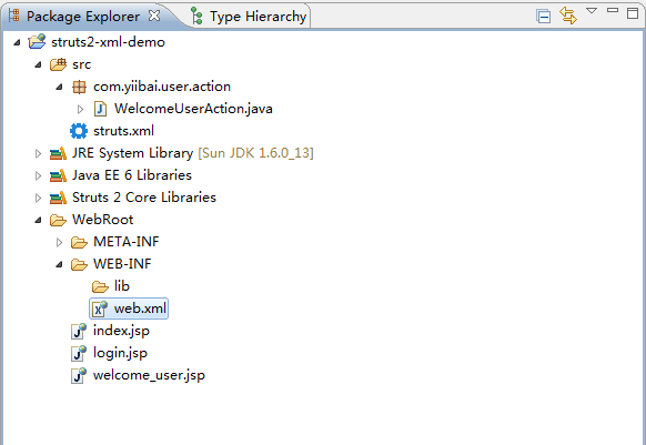 strut配置文件是用来连接所有的东西在一起。 xml文件名必须是 “struts.xml”。在这个实例中,它位于