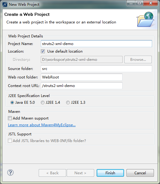启动打开 myeclipse,创建一个web工程名称为:struts2-xml-demo,选择 file -> new -> web project ,如下图所示:
