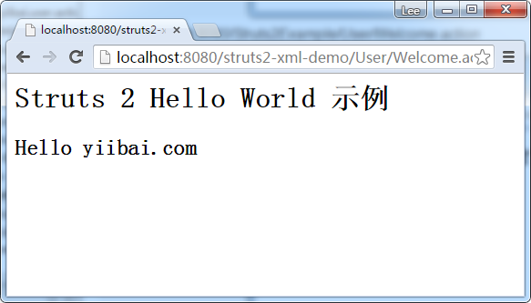 提交后到 http://localhost:8080/struts2example/user/welcome.action 显示如下: