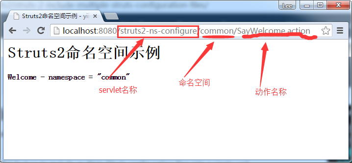看下面的一张图来了解一个url匹配struts 2的动作命名空间。