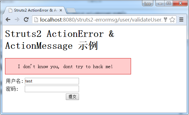 <h1>struts2 actionerror & actionmessage 示例</h1>