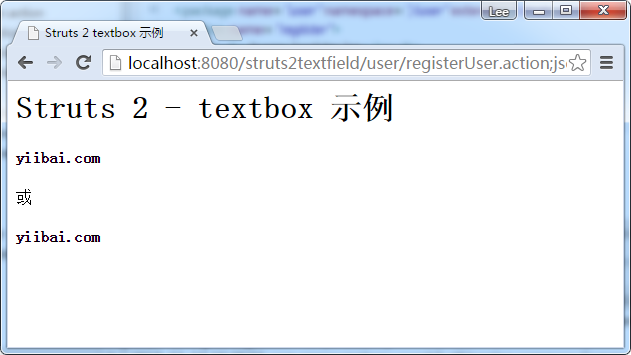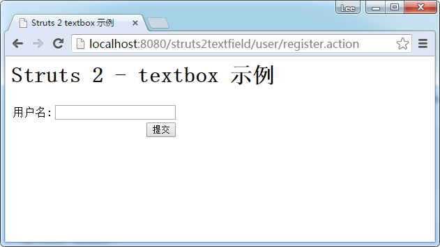 <%@ taglib prefix="s" uri="/struts-tags" %> <html> <head> </head> <body> <h1>struts 2 - textbox 示例</h1> <s:form action="registeruser" namespace="/user"> <s:textfield key="username" /> <s:submit key="submit" name="submit" /> </s:form> </body> </html>