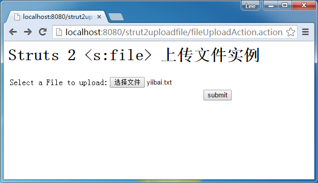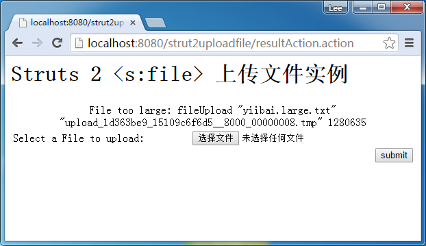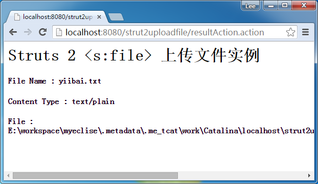 在struts2, <s:file> 标签用于创建一个html文件上传组件,允许用户从本地磁盘选择文件,并将其上传到服务器。在本教程中,您将创建与文件上传组件jsp页面,设置最大大小和允许上传文件的内容类型,并显示上传文件的详细信息。
