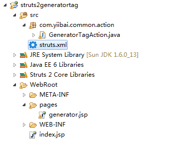 struts2 <s:generator>标记用于基于在页中提供“val”属性,以产生一个迭代。这里创建一个web工程:struts2generatortag,来演示在多个复选框如何设置的默认值,整个项目的结构如下图所示: