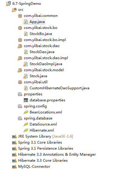 stock dao接口和实现。在上一个教程中,dao类是直接扩展“hibernatedaosupport“。但注释方式不可能做到这一点,因为没有办法从dao类会话到工厂bean自动装配。解决方法是创建一个自定义类(customhibernatedaosupport),并扩展了“hibernatedaosupport”和自动装配会话工厂,dao类扩展了这个类。
