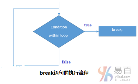 c++ break用于中断循环或switch语句。 它在给定条件下中断程序的当前执行流程。 在内循环的情况下,它仅中断内循环。
