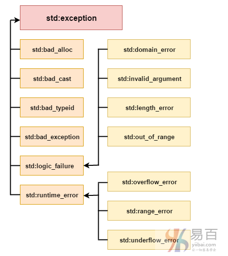 c++中的所有异常类都是从std::exception类派生的。 下面来看看看c++常见异常类的列表。