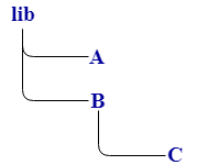 在上面的例子中,程序由三个模块组成,即a,b和c。c是b模块的内部模块。