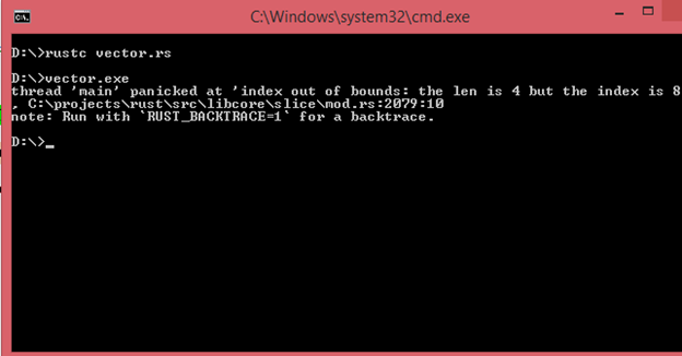 在上面的声明中,v是i32类型的向量,它是使用vec::new() 函数创建的。