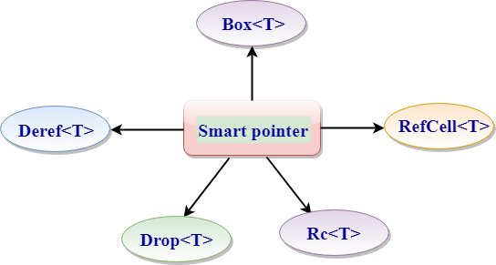 box <t>:box <t>是一个智能指针,指向在类型为t的堆上分配的数据,其中“t”是数据的类型。它用于将数据存储在堆上而不是堆栈上。deref <t>:deref <t>是一个智能指针,用于自定义解除引用运算符(*)的行为。drop <t>:drop <t>是一个智能指针,用于在变量超出范围时从堆内存中释放空间。rc <t>:rc <t>代表参考计数指针。它是一个智能指针,用于记录存储在堆上的值的引用数。refcell <t>:refcell <t>是一个智能指针,允许借用可变数据,即使数据是不可变的。这个过程被称为内部可变性。