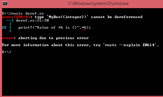 在上面的例子中,创建了智能指针b,但它不能被解除引用。 因此得出结论,无法取消类似于box <t>类型的自定义指针的引用。
