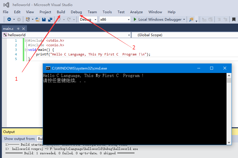 到此,我们学习了如何编写第一个c语言程序,以及如何通过visual studio 2015 创建一个应用程序项目和编译运行c语言程序。