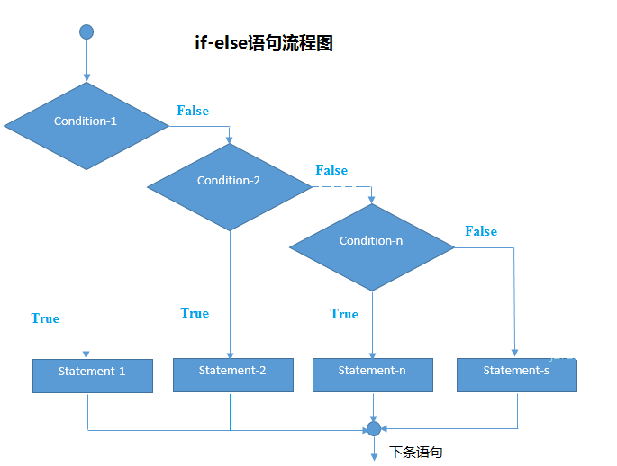 c语言中的if-else语句的流程图,如下所示 -