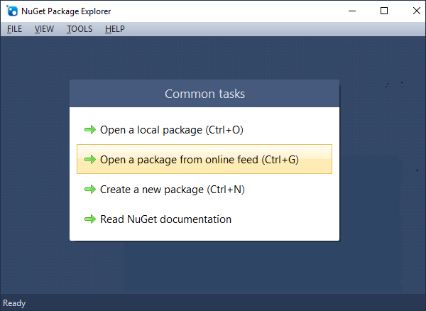 *.csproj,所以回到旧的引用风格,只能使用这个工程类型定位一个框架。miscrosoft.netcore.universalwindowsplatform nuget包引用类似于console应用程序中的microsoft.netcore.app nuget引用。miscrosoft.netcore.universalwindowsplatform和microsoft.netcore.app都是元程序包,这意味着它们是由其他程序包组成的。microsoft.netcore.app中的其他包,但不能在解决方案资源管理器中执行相同的microsoft.netcore.universalwindplatform。现在点击open a package from online feed 选项。