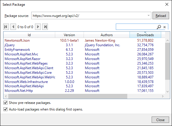 默认情况下,它将搜索nuget.org提要。现在在搜索框中搜索microsoft.netcore.universalwindowsplatform,您将看到1个结果,如下所示。