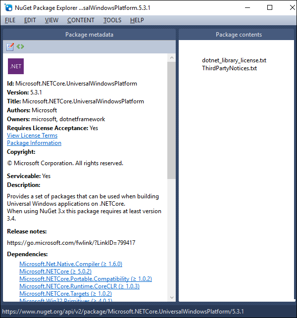 现在一起打开.netcore应用程序的.netcore元数据包和uwp应用程序的元数据包。