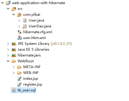 首先打开 myeclipse ,创建一个动态web项目:web-application-with-hibernate,其结果如下 -
