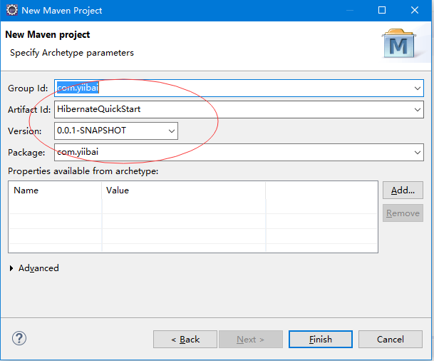 下一步,写入工程名称:hibernatequickstart,以及输入包信息:com.h3 等信息。