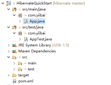 项目(hibernatequickstart)创建完成后,如下图所示 -