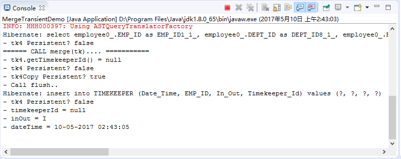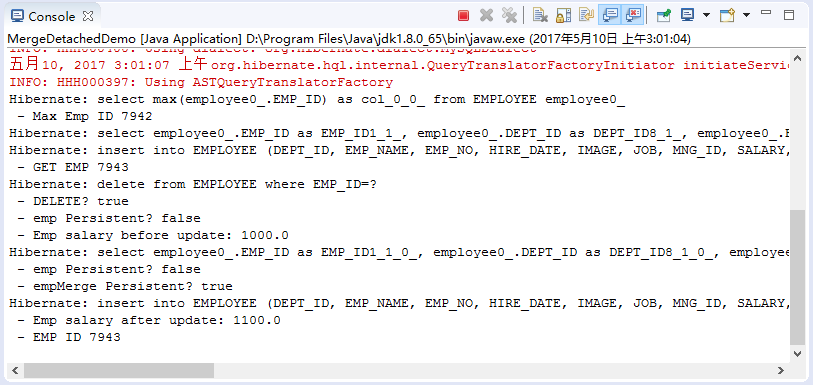 创建一个java类文件:mergedetacheddemo.java,用于演示将对象分离转变为持久性状态。