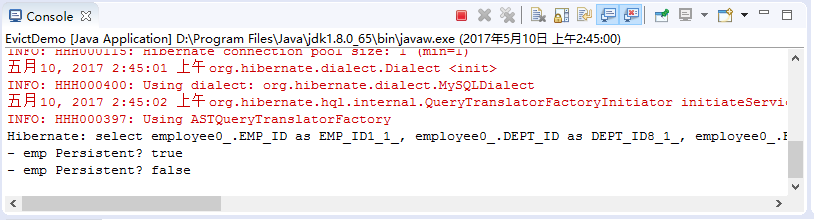 system.out.println(" - emp persistent? " + session2.contains(emp));