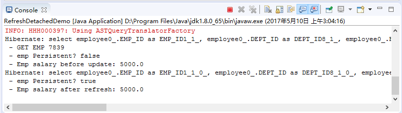 创建一个java类文件:refreshdetacheddemo.java,用于演示将对象分离转变为持久性状态。