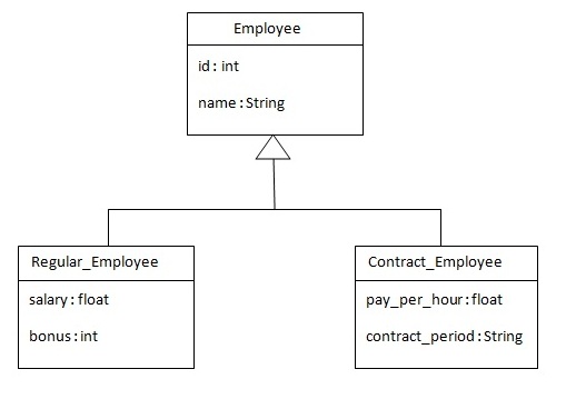 这个层次结构中有三个类。employee是regular_employee和contract_employee类的超类(父类)。 让我们来看看这个层次结构类的映射文件。