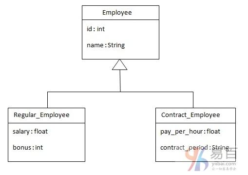 您需要创建表示继承的持久化类。 让我们为上面的层次结构创建三个类: