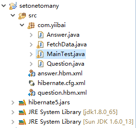 创建一个名称为: setonetomany 的java项目,其结构如下所示 -