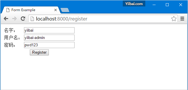 第6步 - 请访问以下网址,注册表单如下图所示。输入注册信息,然后点击"注册",之后会看到检索并显示用户注册的详细信息在第二个页面上。