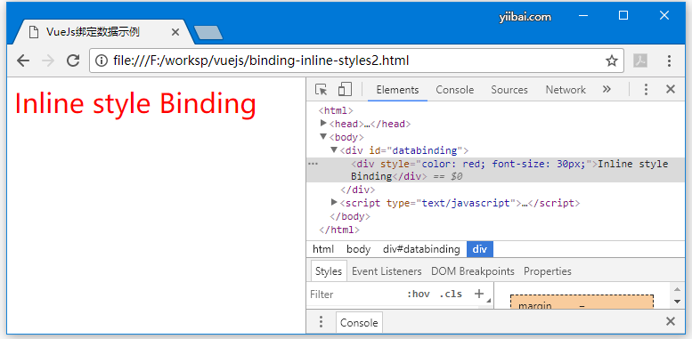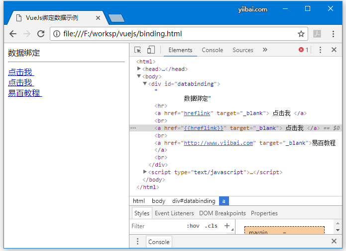 通过下面一个例子来理解为什么需要以及何时使用v-bind指令进行数据绑定。创建一个文件:binding.html -