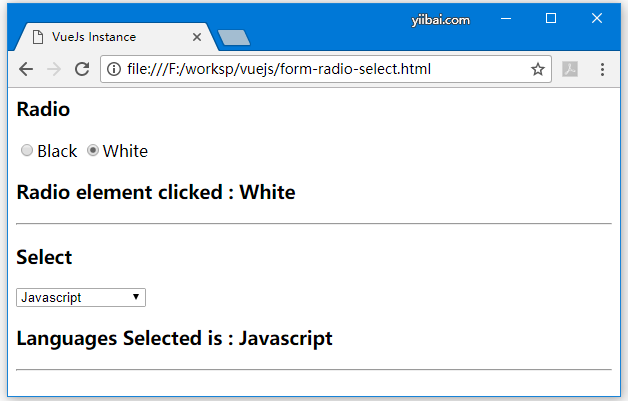 <input type = "radio" id = "white" value = "white" v-model = "picked">white