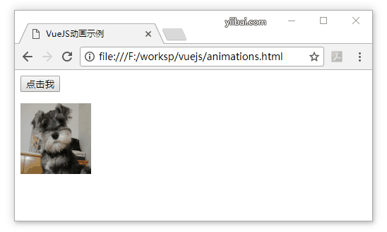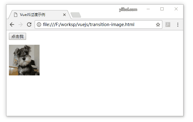 下面再来看看另外一个例子,其中有一个图像,当点击按钮时,它在x轴上移动。创建一个文件:transition-image.html -