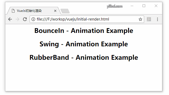 在上面的例子中,使用了animate.css库中的三个不同的动画。并且已经添加到过渡元素。
