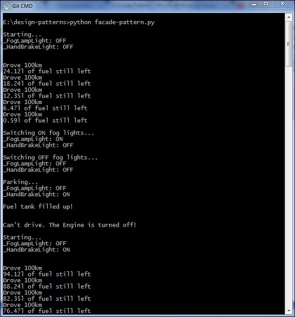 现在让我们看看如何设计一个门面(facade)设计模式。参考以下实现代码 -