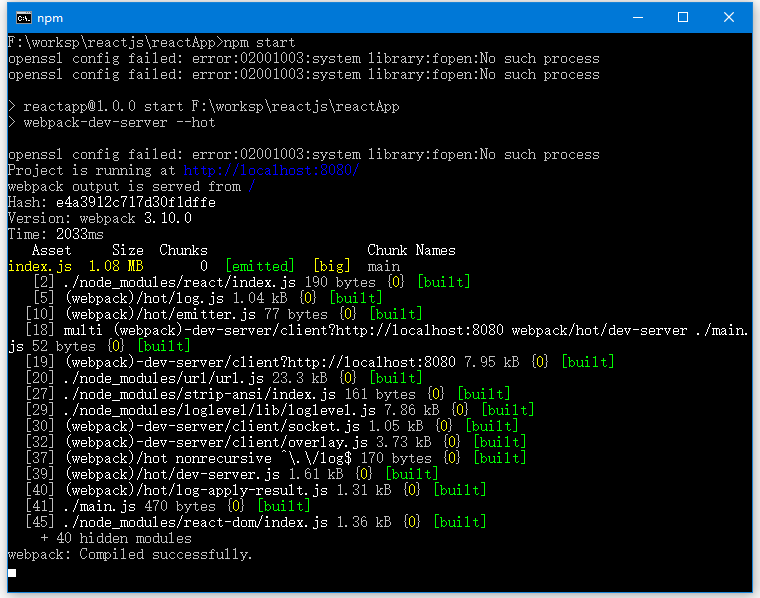 f:\worksp\reactjs\reactapp> npm install webpack-dev-server -g