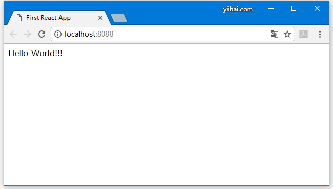 这是第一个react组件。我们将在后面的章节中深入讲解react组件。 这个组件将显示输出:"hello world !!!"